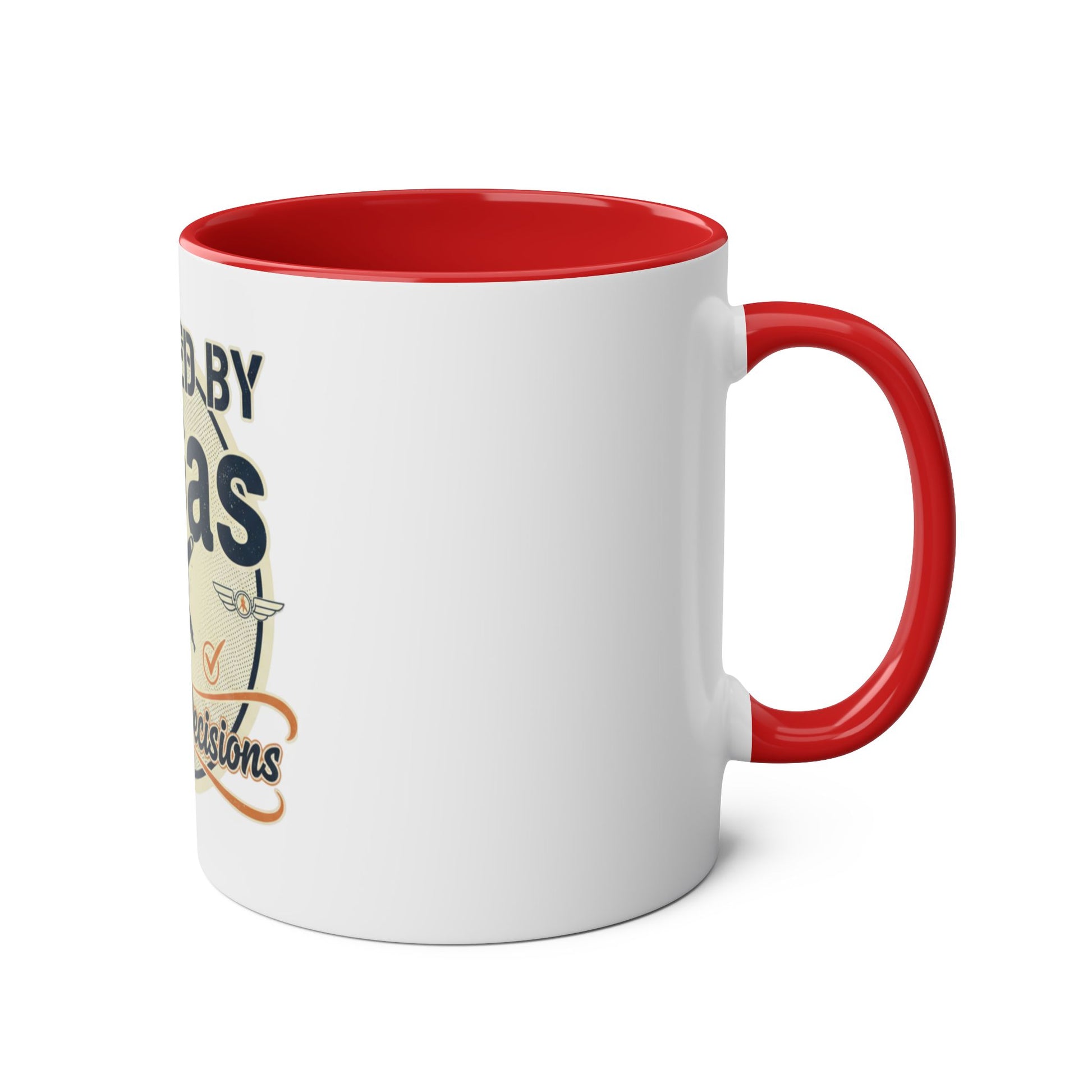 This two-tone 11oz ceramic mug brings the rowdy charm of the flightline to your morning routine. The bold “Powered by AvGas and Bad Decisions” aviator graphic sits crisp and bright against a high-gloss finish, the kind of mug that earns a nod from fellow pilots and sparks a grin from anyone who’s spent hours trading stories under the wing. Lightweight but sturdy, the C-shaped handle feels familiar in hand while the vibrant accent color wraps the rim and handle with personality. It’s the kind of cup you reach for when you want coffee with attitude — whether that’s before an early training flight, after a long cross-country, or during a weekend of hangar banter.