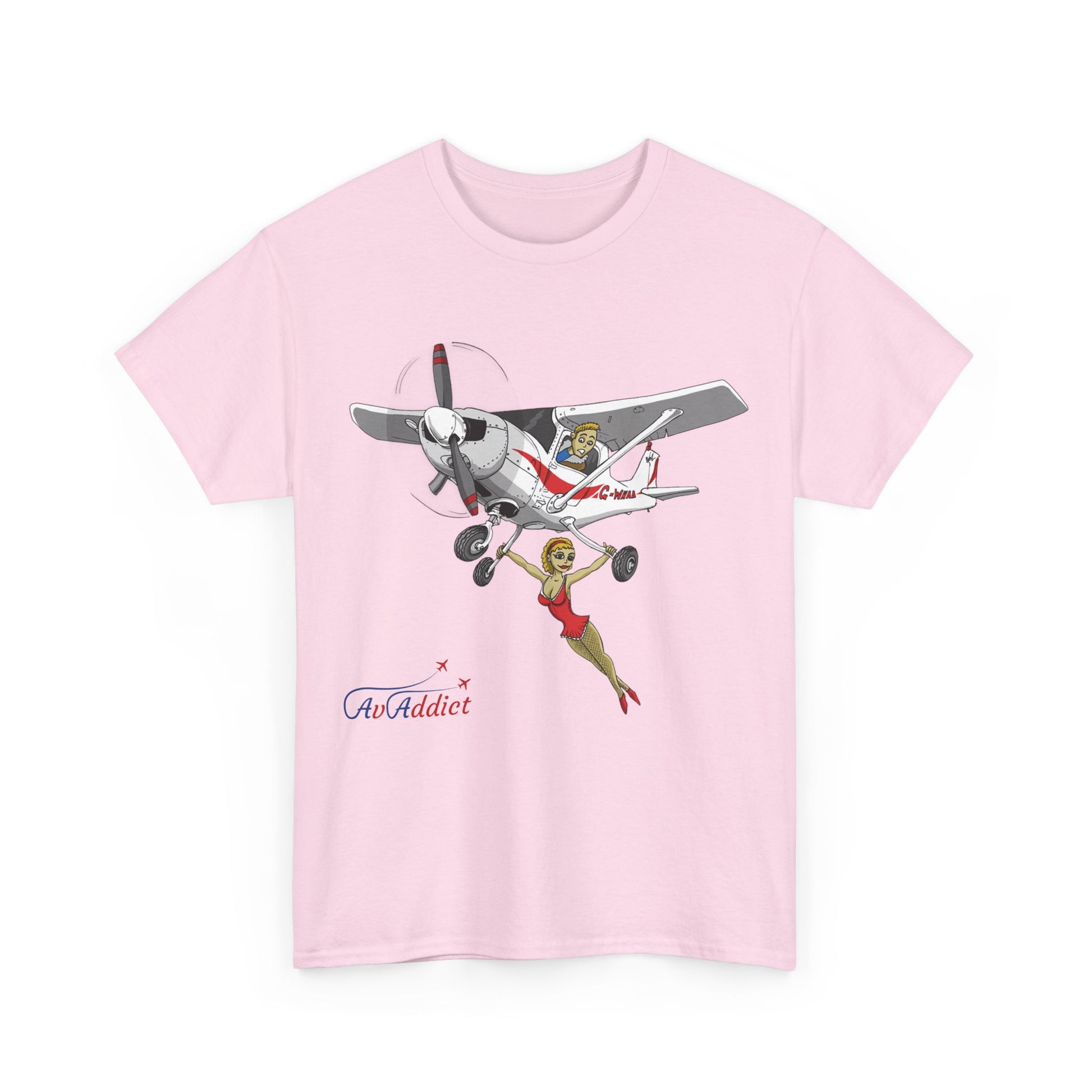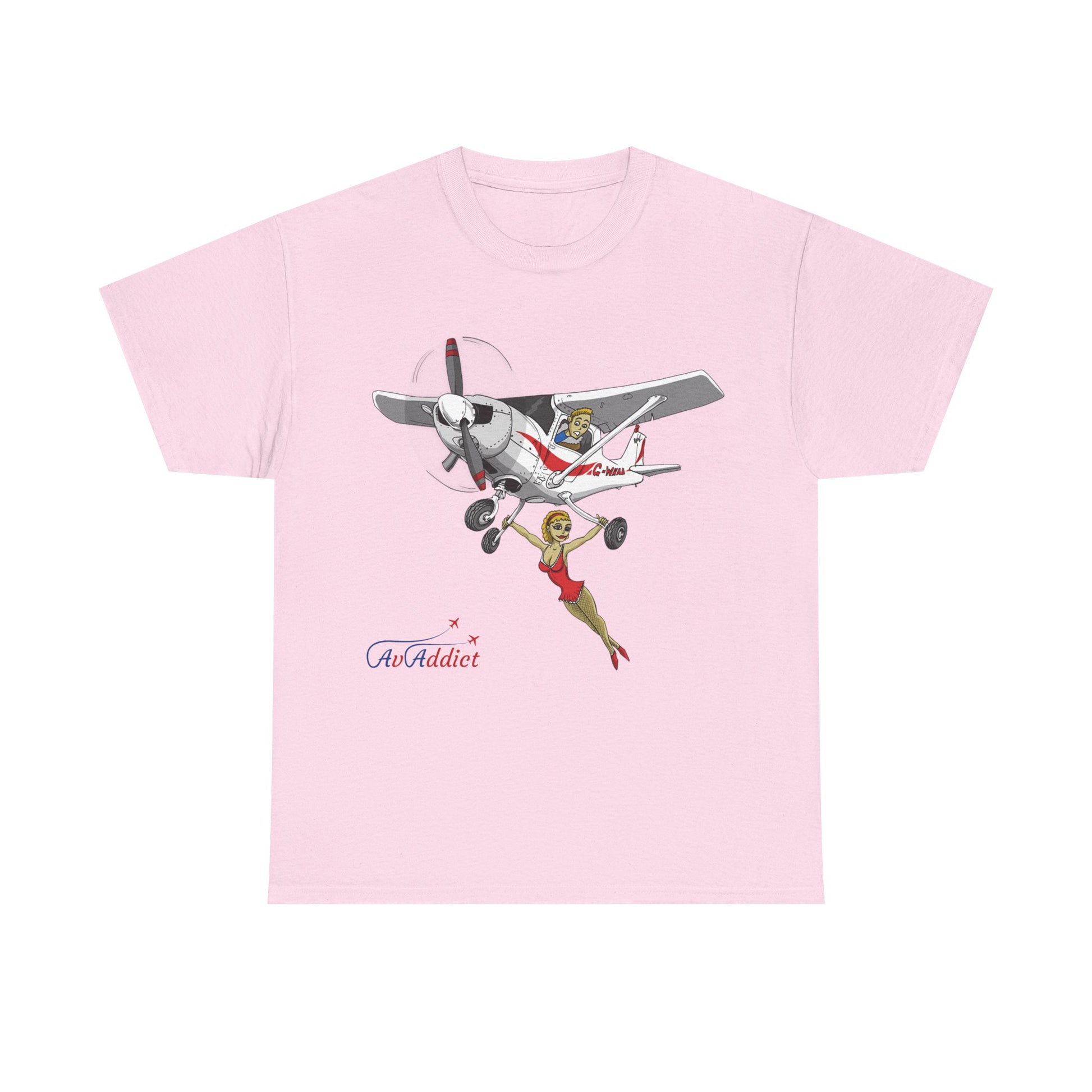 This Tee features a charming design of a Cessna Trapeze artist practicing weight and balance in a cartoon style. It exudes a fun and whimsical vibe, perfect for everyday wear or casual outings. Ideal for adults who appreciate unique and playful designs. Perfect for gifting on birthdays, holidays, or special occasions.