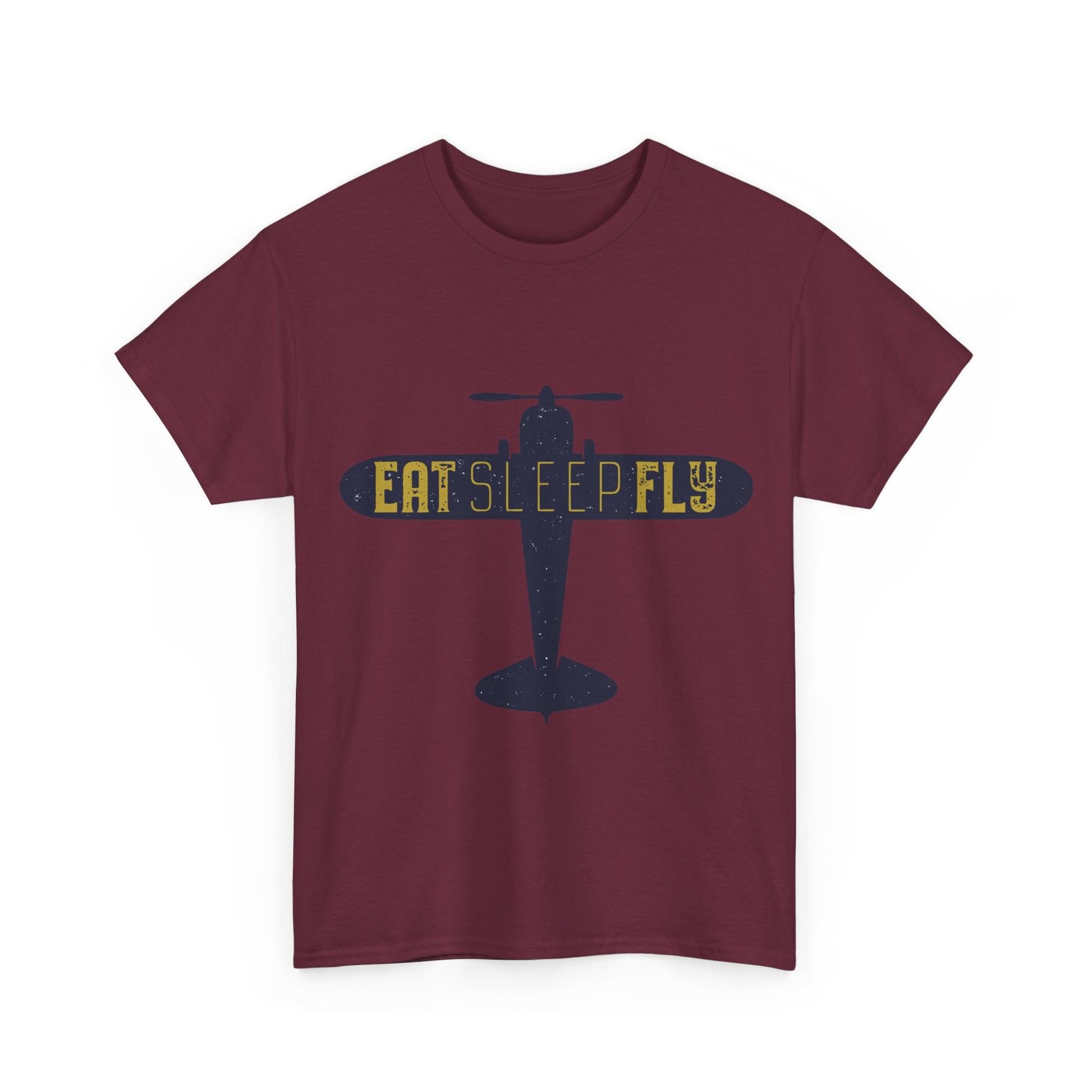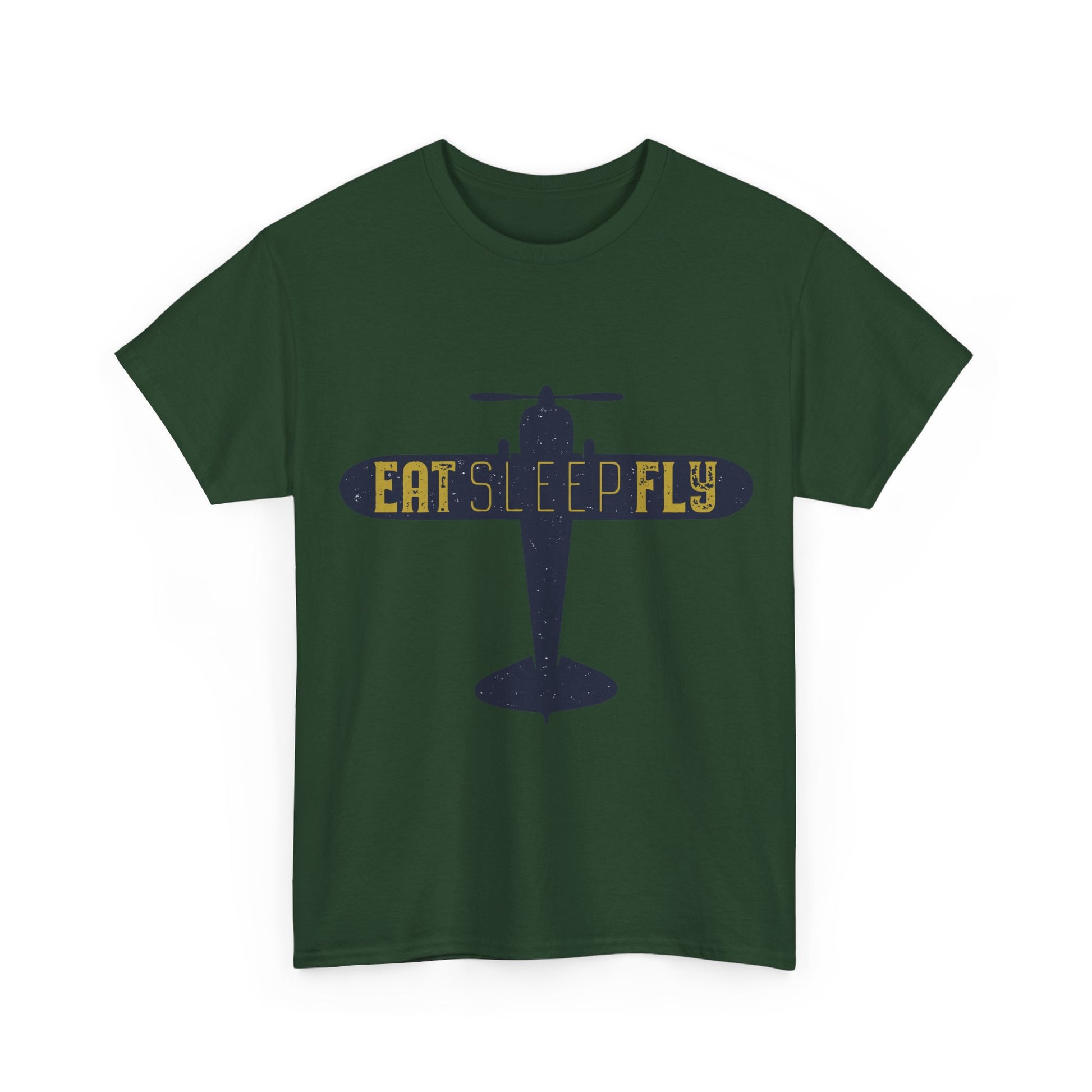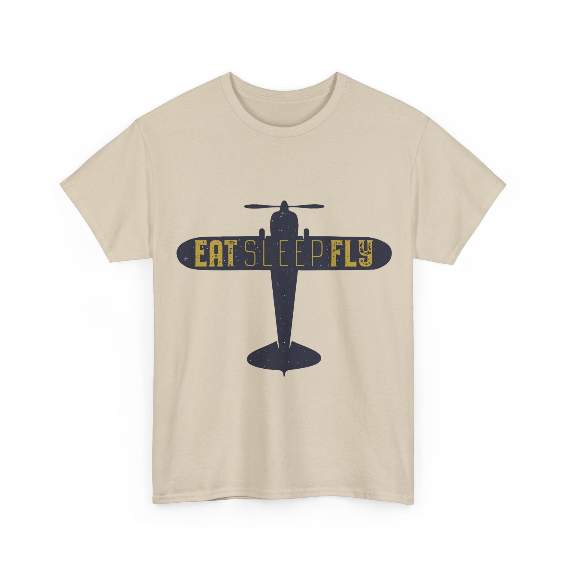 This soft, durable tee carries a stripped-back aviation vibe — a crisp silhouette of a vintage plane with “EAT SLEEP FLY” stenciled across the wing. It feels like the first cool morning before a cross‑country hop: simple, steady, and ready for days spent at the hangar or cruising commuter airways. Wear it with worn-in jeans, a flight jacket, or layered under a chore coat; the graphic reads like a quiet badge of obsession for anyone who breathes altitudes and pre-flight checks. The breathable cotton and classic crew neck keep you comfortable during long drives to the airport or relaxed evenings swapping flying stories with friends.