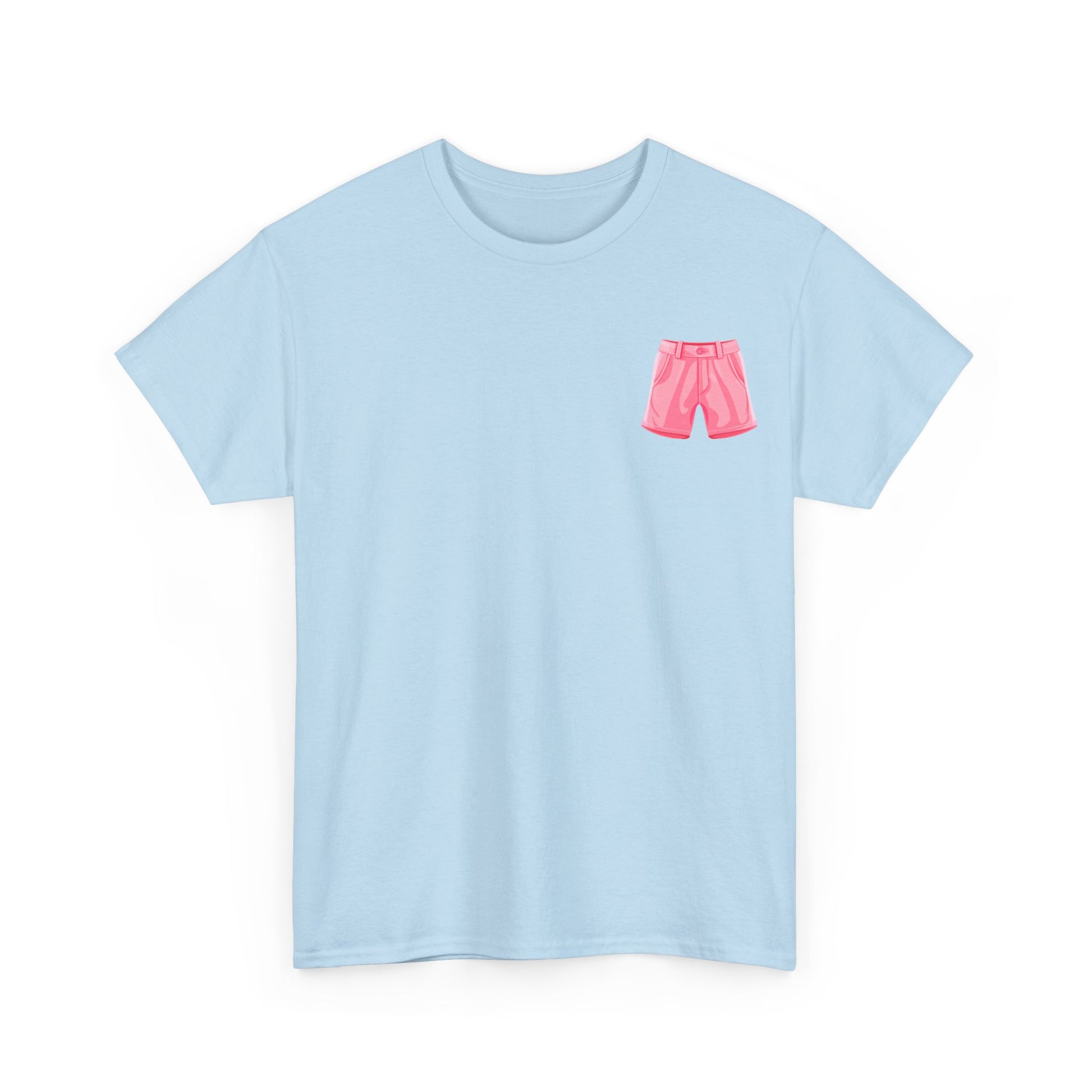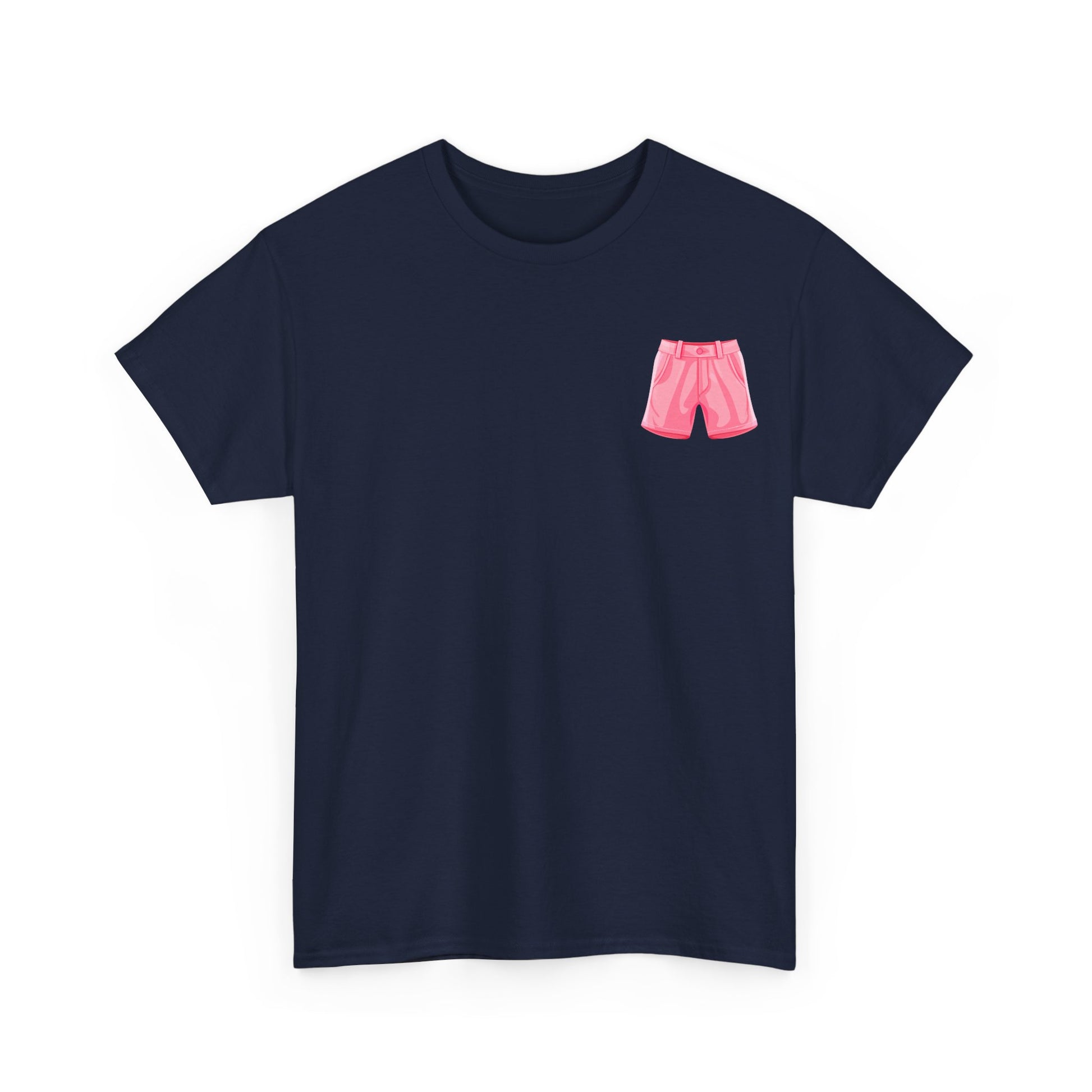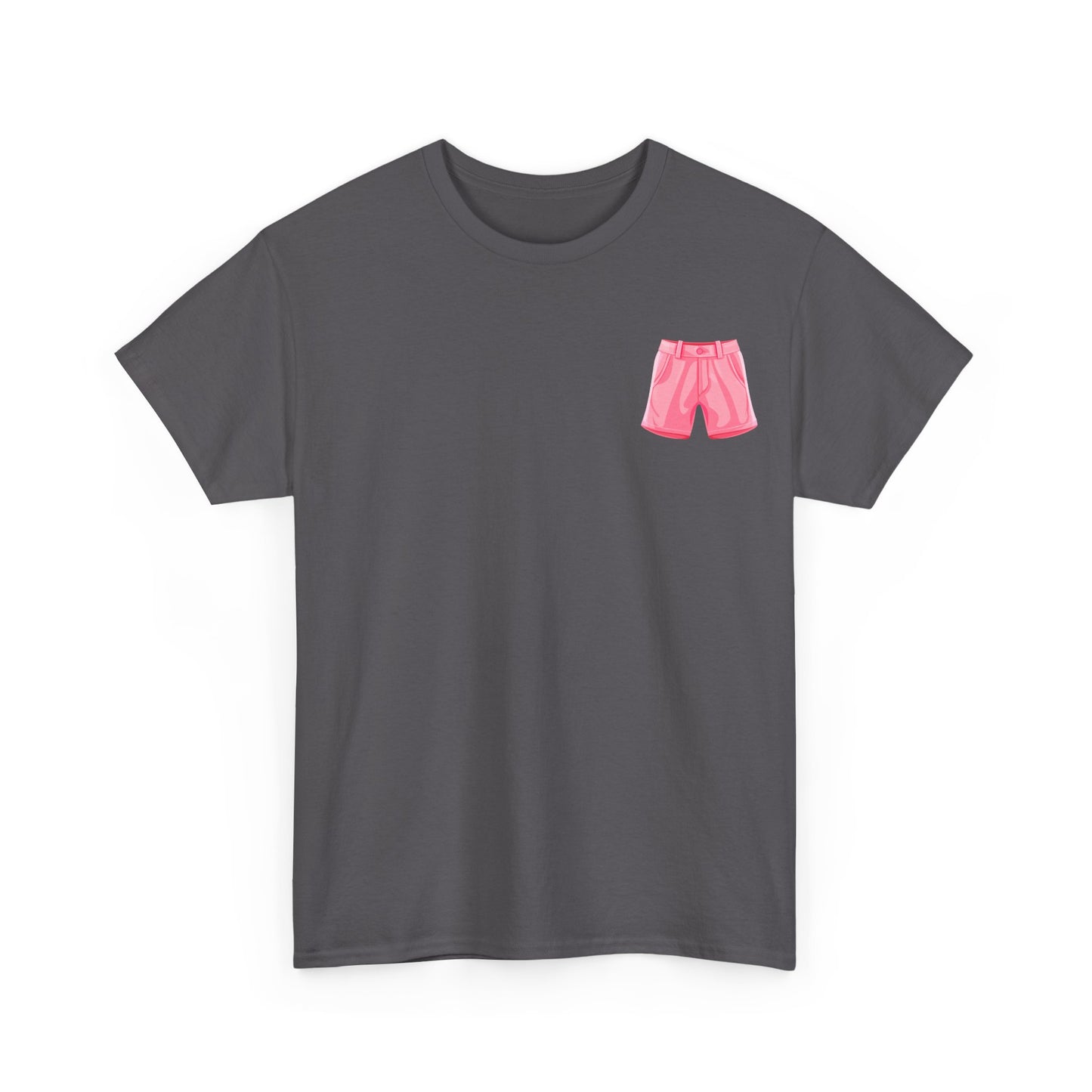 A comfortable and durable T-Shirt featuring a design of the famous Pink Shorts of Manchester Airport.