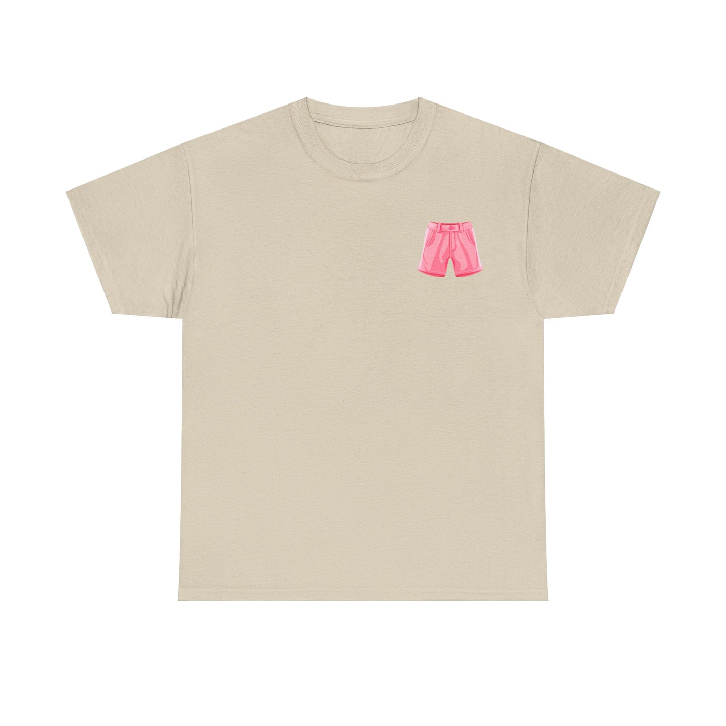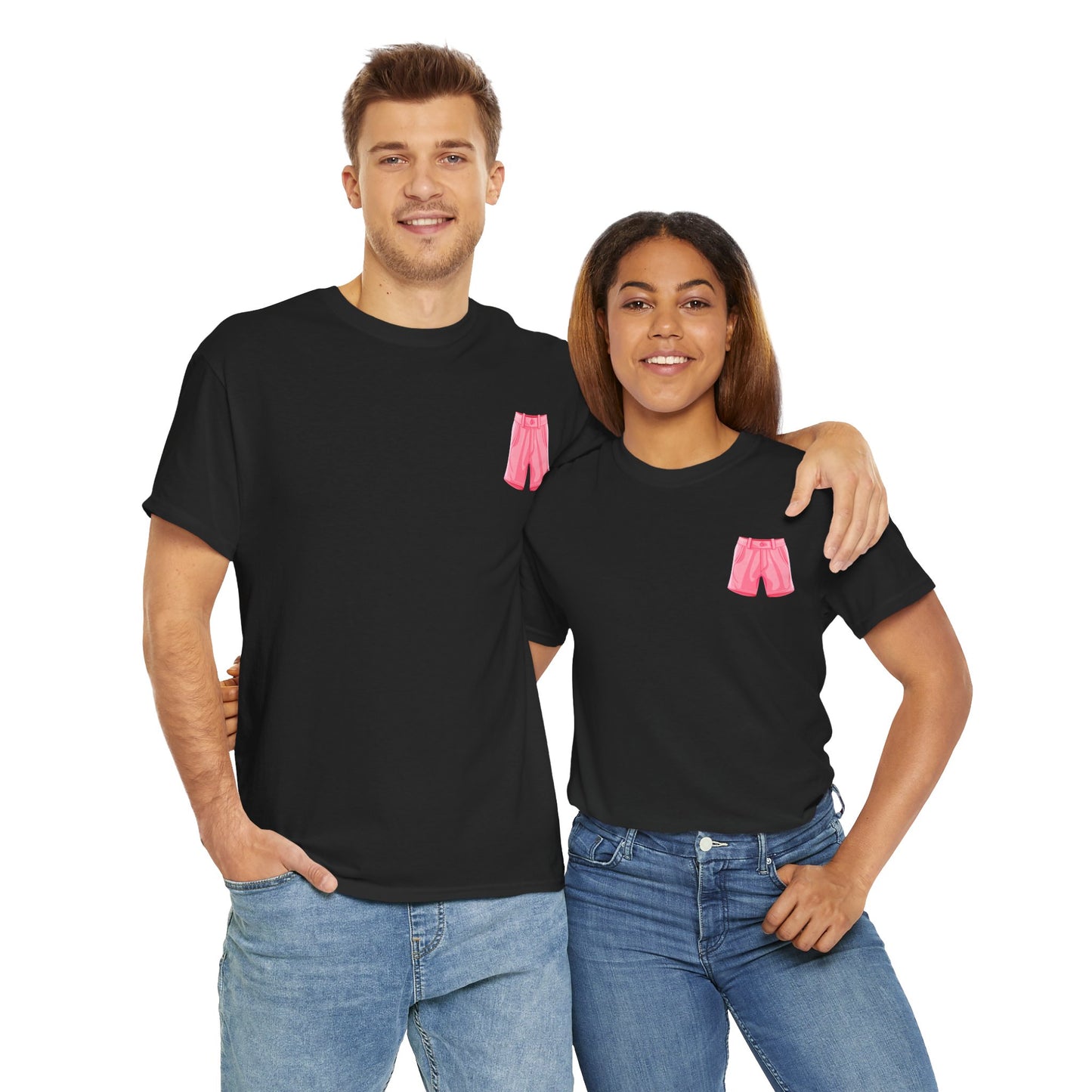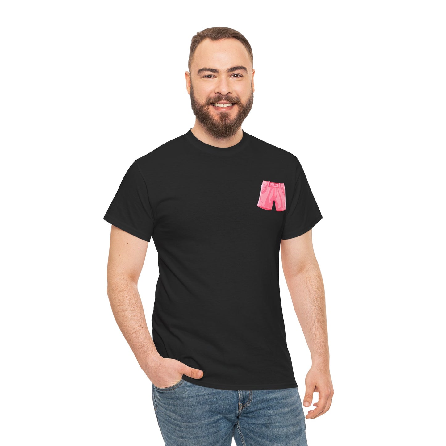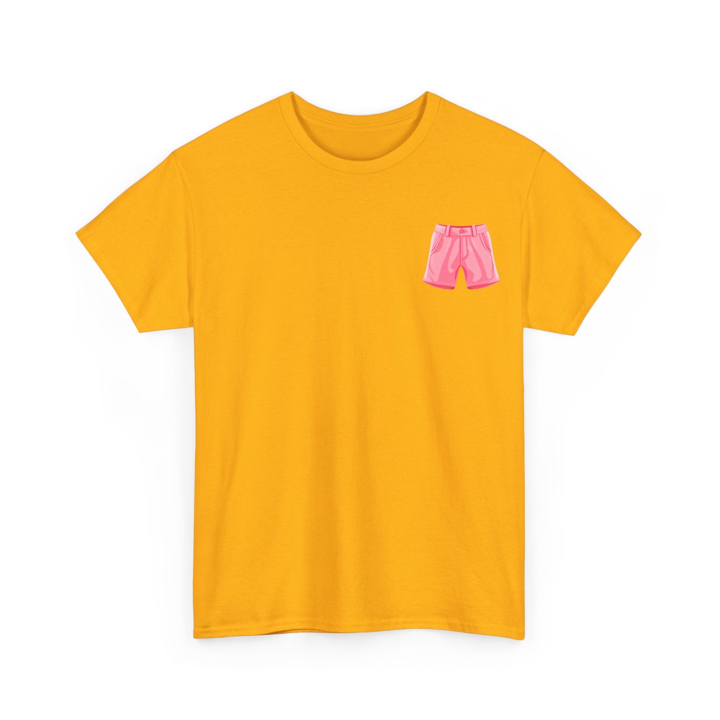 A comfortable and durable T-Shirt featuring a design of the famous Pink Shorts of Manchester Airport.