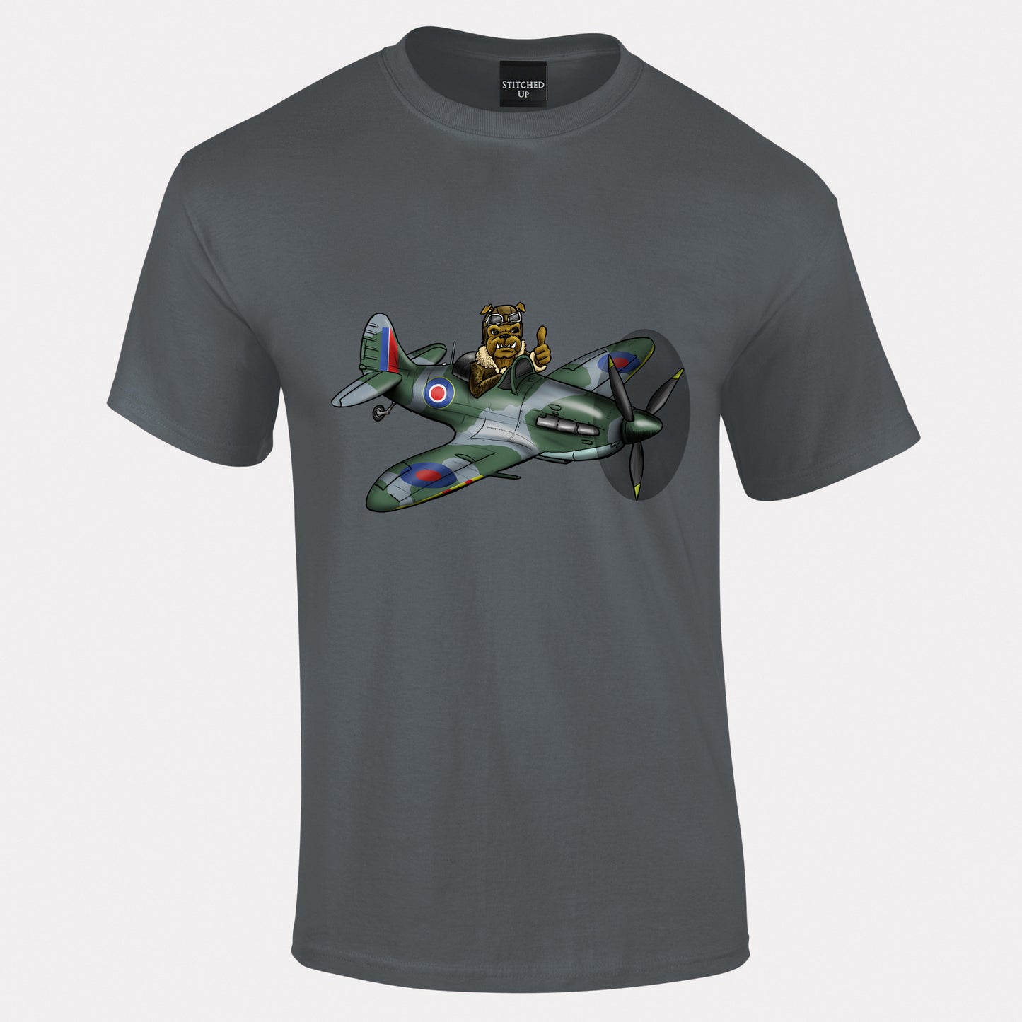 Unique hand drawn art by Beanz, Spitfire British Bulldog T-Shirt.